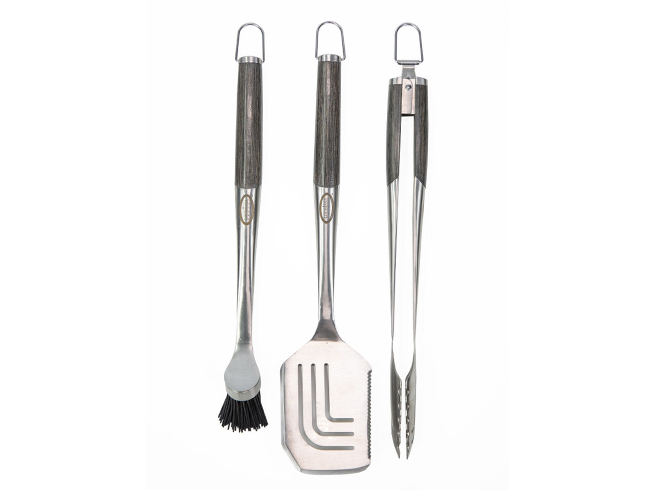 2. Lamineeritud puidust käepidemete, esmaklassilise roostevabast terasest konstruktsiooni ning praktiliste riputusaasadega kvaliteetne komplekt pakub kõike, mida vajad tipptasemel grillil toidu valmistamiseks.